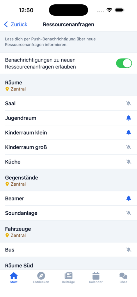 Ihr könnt jetzt selbst entscheiden, ob ihr Benachrichtigungen zu Ressourcen erhalten möchtet. So bleibt ihr nur über die Dinge informiert, die für euch relevant sind, ohne von unnötigen Meldungen abgelenkt zu werden.