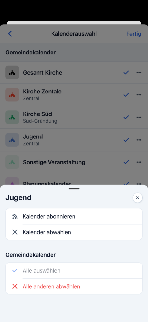 - Kalender können jetzt aus der App in externe Kalender (z.B. Google-Kalender, System-Kalender-App, …) abonniert werden.