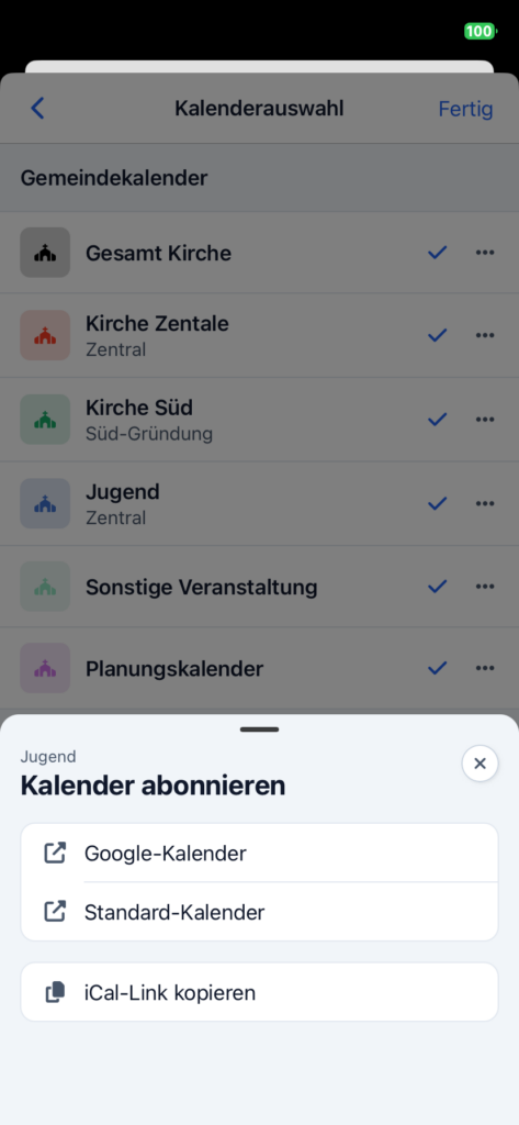 Ihr könnt jetzt Kalender aus der App in externe Kalender-Apps wie Google-Kalender oder eure Kalender-App abonnieren. So bleiben eure Termine und Gruppenaktivitäten auch außerhalb der App immer im Blick.