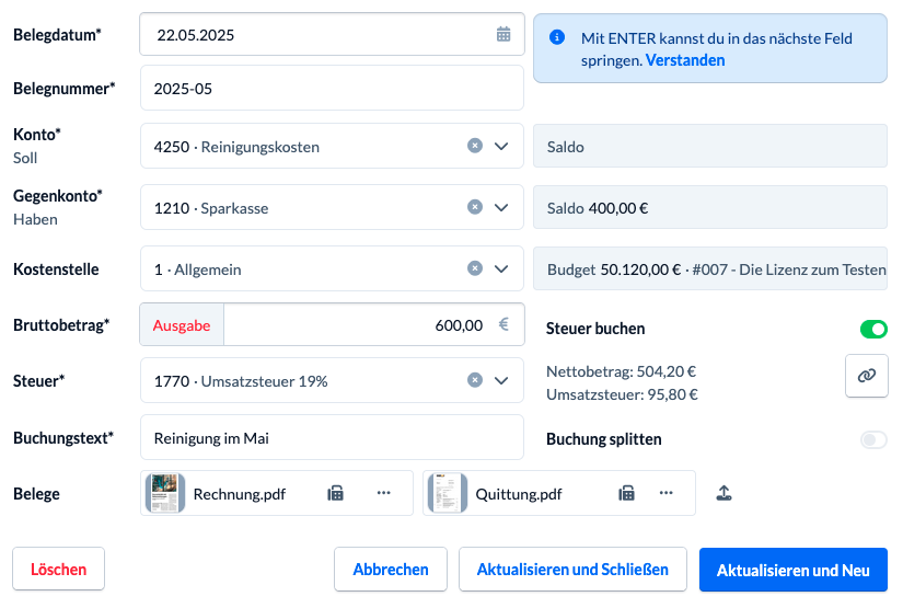 und ordnet sie direkt dem Modul ChurchTools Finanzen zu. Dort landen sie automatisch als Beleg bei der passenden Buchung – optional mit zusätzlicher Papierkopie im Faxgerät zur Sicherheit.