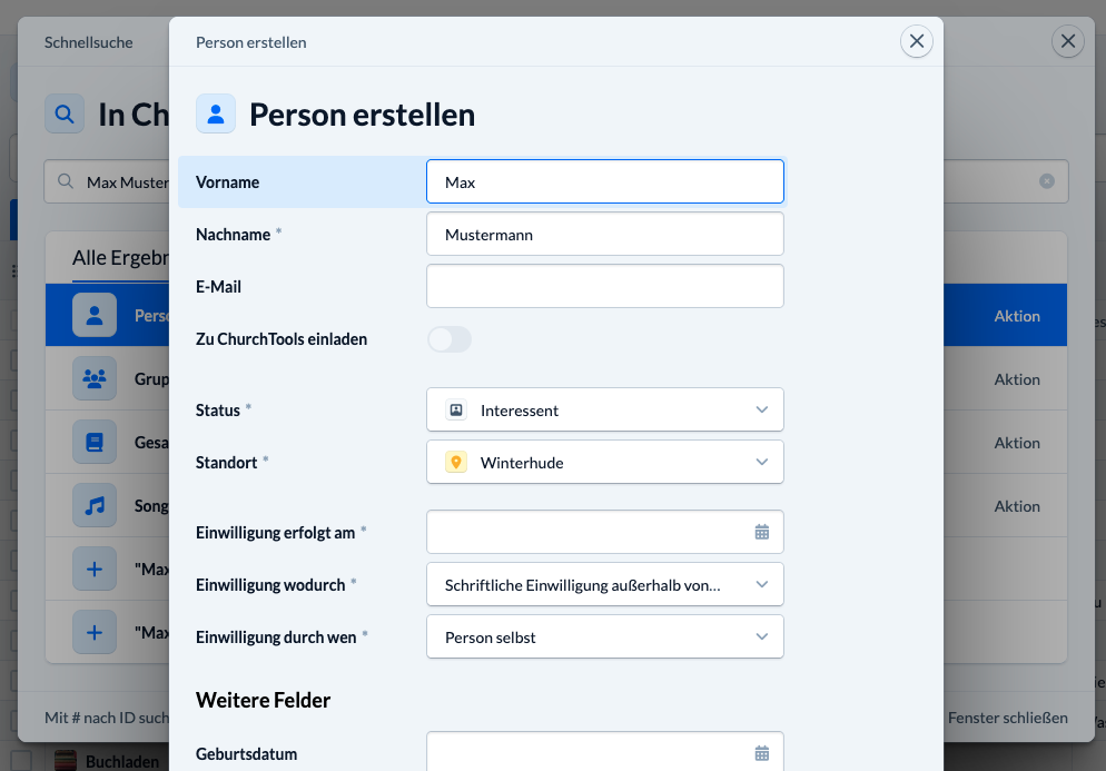 - Personen können nun auch über die Schnellsuche erstellt werden.